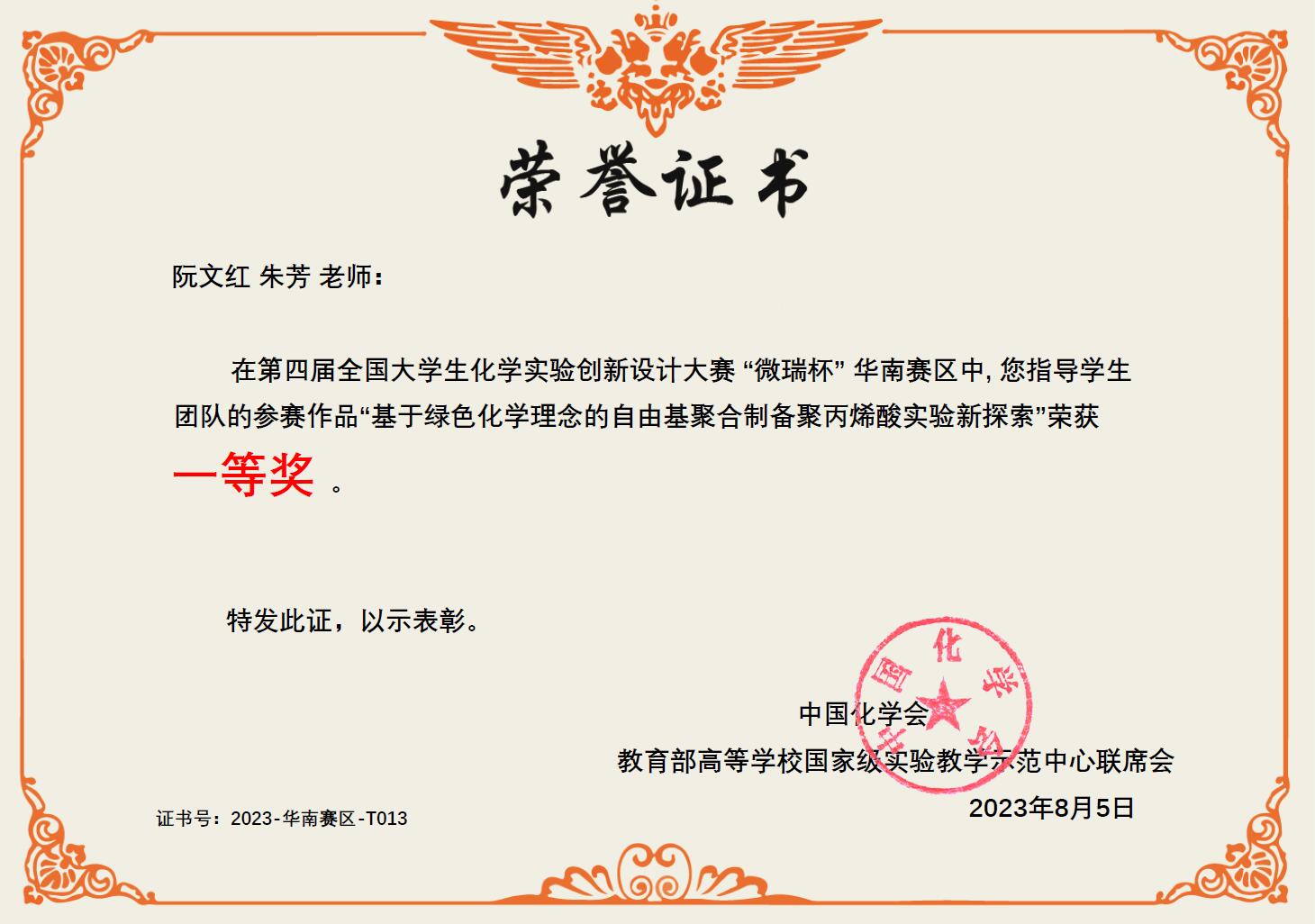 中山大学-改进实验-总决赛特等奖、华南区一等奖