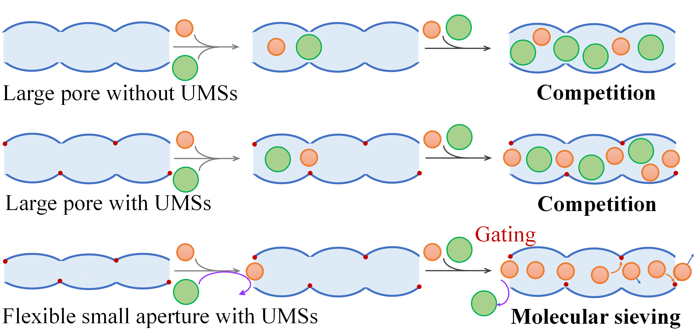 图1 常见孔结构在单组分和混合组分的吸附分离行为