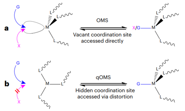 1(a) OMS具有空缺配位点;(b) qOMS的配位点被隐藏
