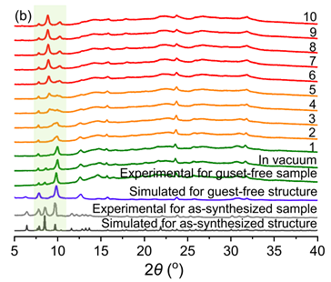 2MAF-2Fb(a) 195 K CO吸附等温线及(b)原位PXRD图谱