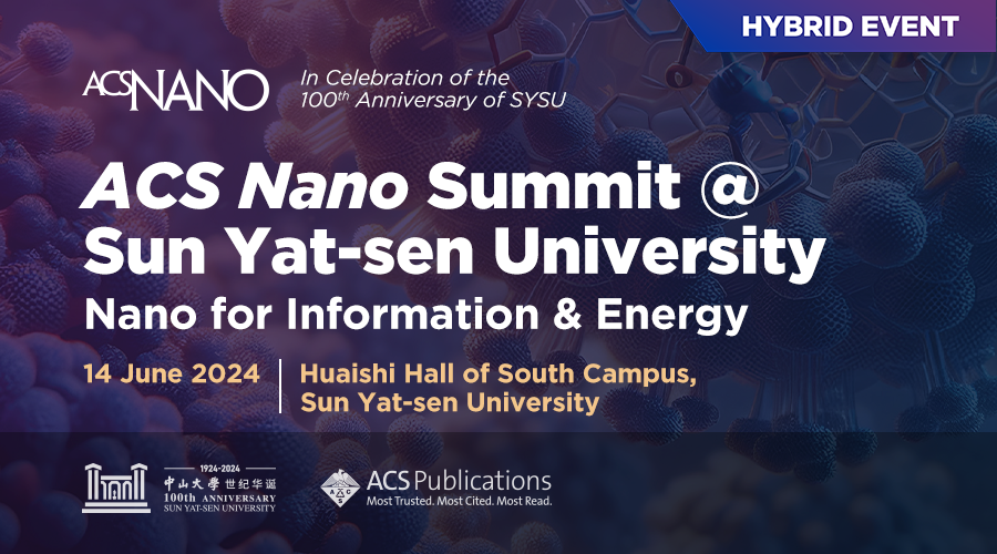 为庆祝中山大学百年华诞,2024年6月14日美国化学会(ACS)将联合中山大学共同举办ACS Nano Summit @ Sun Yat-sen University学术研讨会。本次峰会以 Nano for Information& Energy为主题,线上同步直播,欢迎踊跃报名参加。