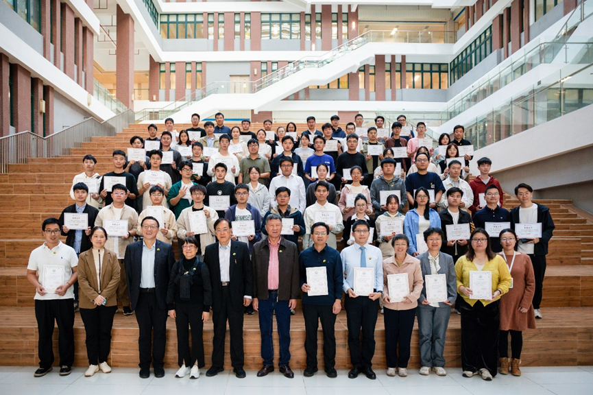 随后,陈运河、刘修婉与沈继端校友共同为匡代彬等10名教师、黄钰燕等88名同学颁发荣誉证书与芙兰徽章,将“芙蕖自洁,兰若自芳”的芙兰精神亲手传递至新一代师生手中,体现着精神的接续与传承。