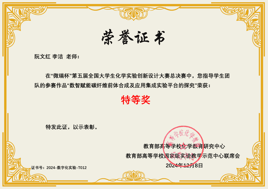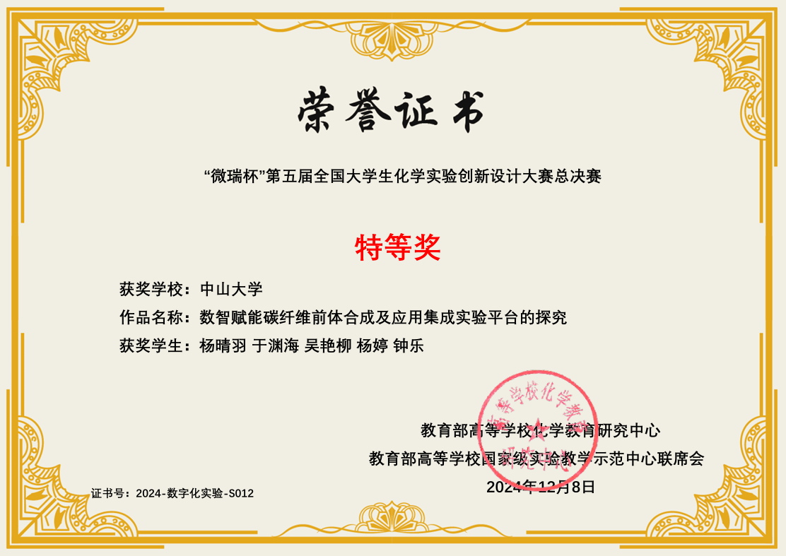 导航痕迹 中山大学 化学国家级实验教学示范中心  化学竞赛  “微瑞杯”第五届 (2024年和2025年) 全国大学生创新实验设计竞赛  中山大学-数字化实验-总决赛特等奖 扫描此二维码分享 中山大学-数字化实验-总决赛特等奖 发布人:网站管理员 发布日期:2025-10-09 获奖作品:数智赋能碳纤维前体合成及应用集成实验平台的探究
